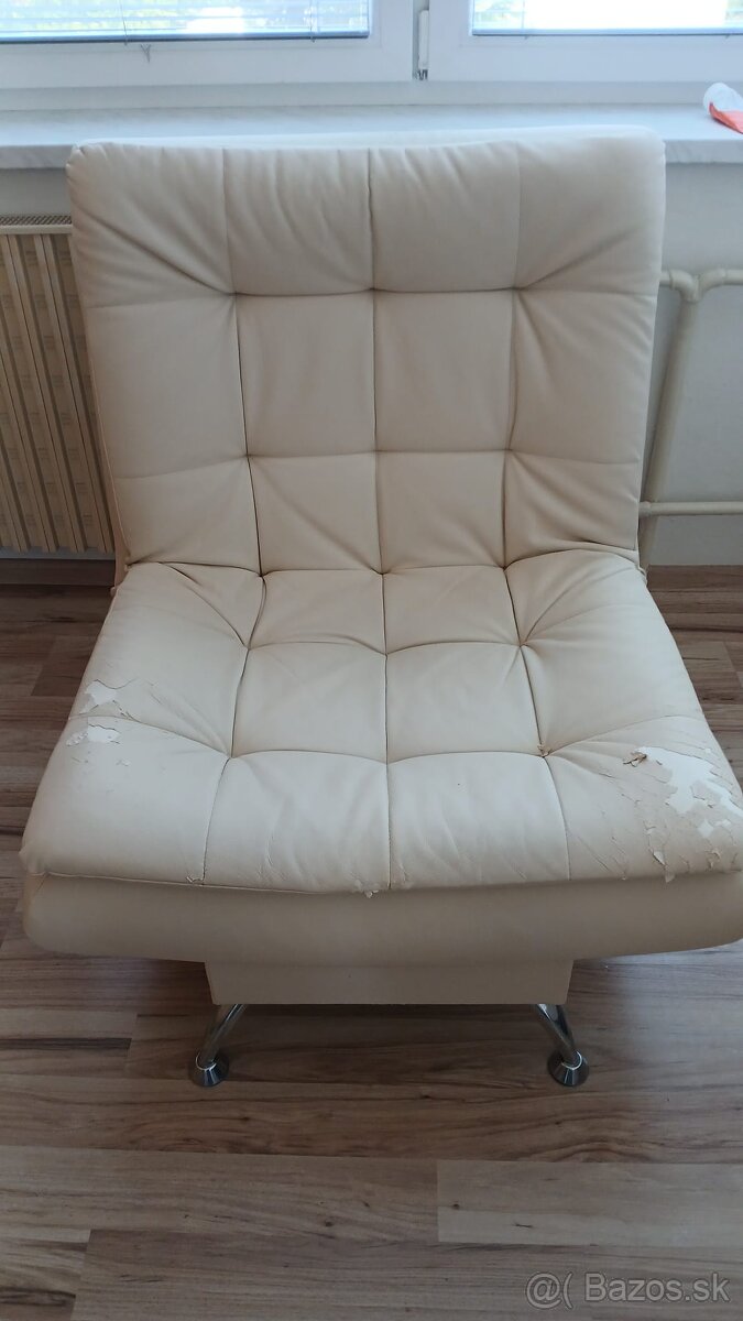 Kožené kreslo a gauč. Nesú známky poškodenia.