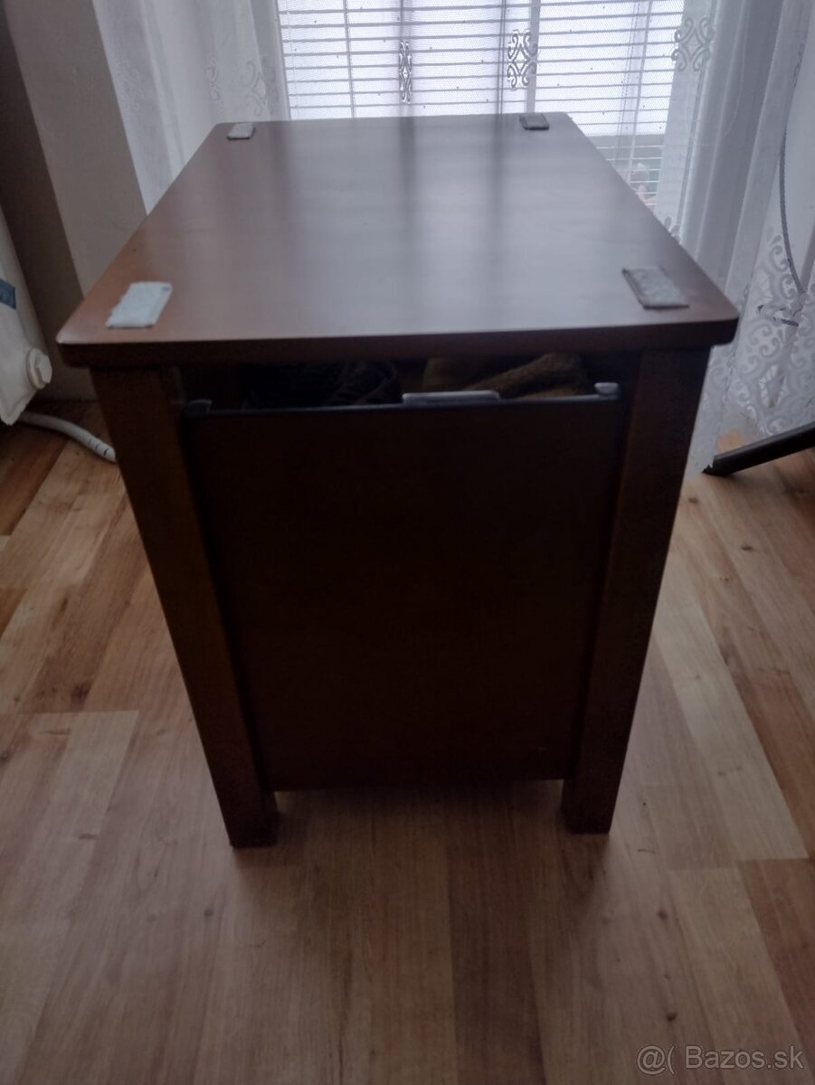 Dobrý deň 2 ks, aj jednotlivo komoda-otvaracia lavica pevná pravdepodobne masiv. Vnútri ulozny priestor. Farba - tmavé drevo.