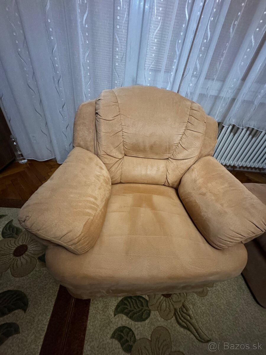 Dvojmiestna gaucovka s kreslom - [19.3. 2026]Predam dvojmiestnu sedačku s kreslom, pohodlná, pevná, vo výbornom stave, bez akéhokoľvek poškodenia, čistá, používaná cca pol roka, nerozkladacia. Rozmer 147x90.