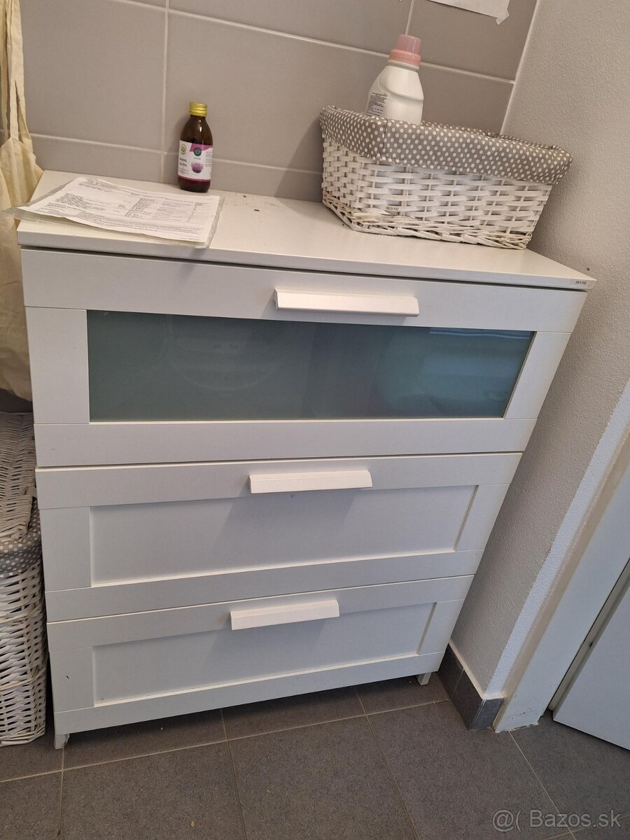 Predam skrinku bielu v zachovalom stave. Bola pouzivana v kupelni na uschovu uterakov a utierok.