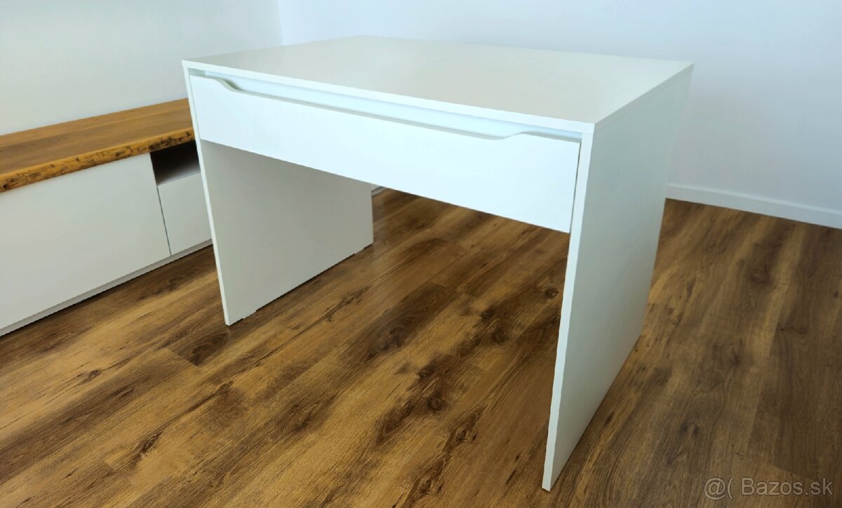 Písací stôl - [18.3. 2026]Predám písací stôl bielej farby. Šírka 83 cm, výška 78 cm, hĺbka 46 cm. Jedna zásuvka. Zachovalý. Mobil 0903 763 335.