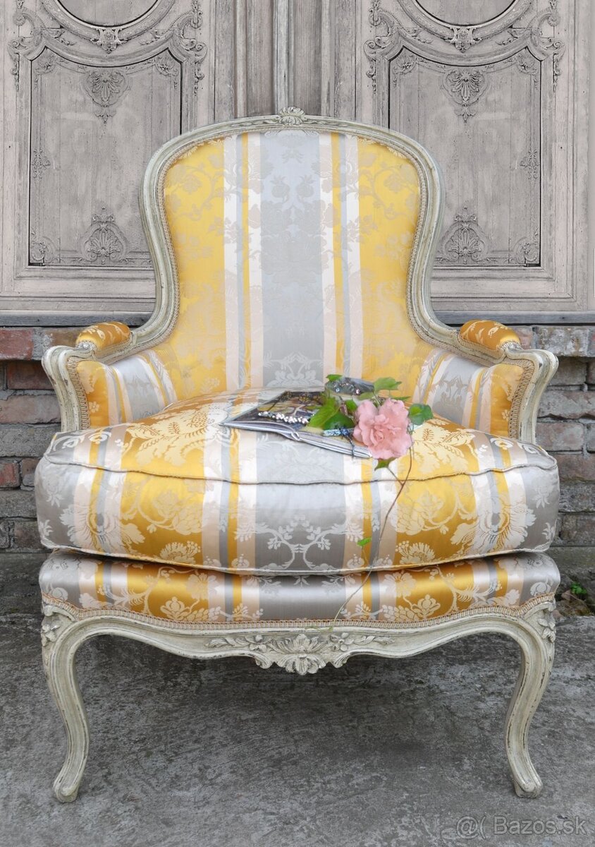 Kreslo s nestarnúcim šarmom, očalúnené s krásnym kvetovaným poťahom. Zdobené vyrezávanými detailami, ktoré mu pridávajú na kráse a vznešenosti. Výrazná patina mu dodáva pôvabný ošumelý vzhľad. Okrem toho, že vám poskytne pohodlie dodá vášmu interiéru nadčasový dizajn.