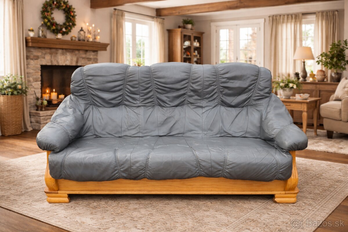 Predám koženú trojsedačku s masívnym dubovým drevom.