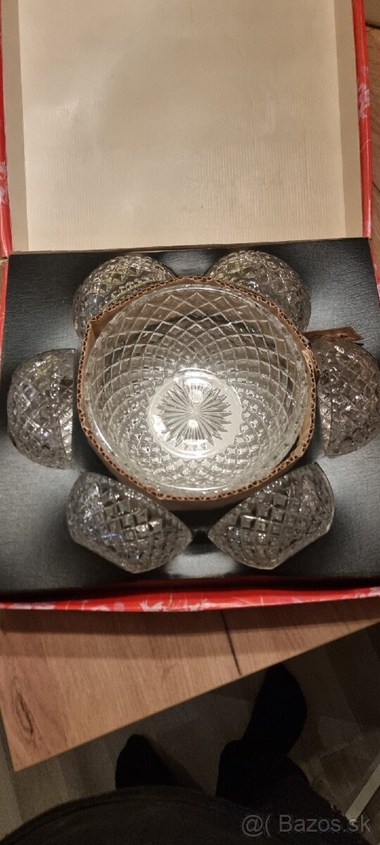 Predám kryštálový set na šalát 7ks, 6 malých misiek a 1 veľká miska,ceskoslovemska výroba, nikdy neboli použité, v originálnom obale so štítom závodu. Cena 20€ . Len osobný odber