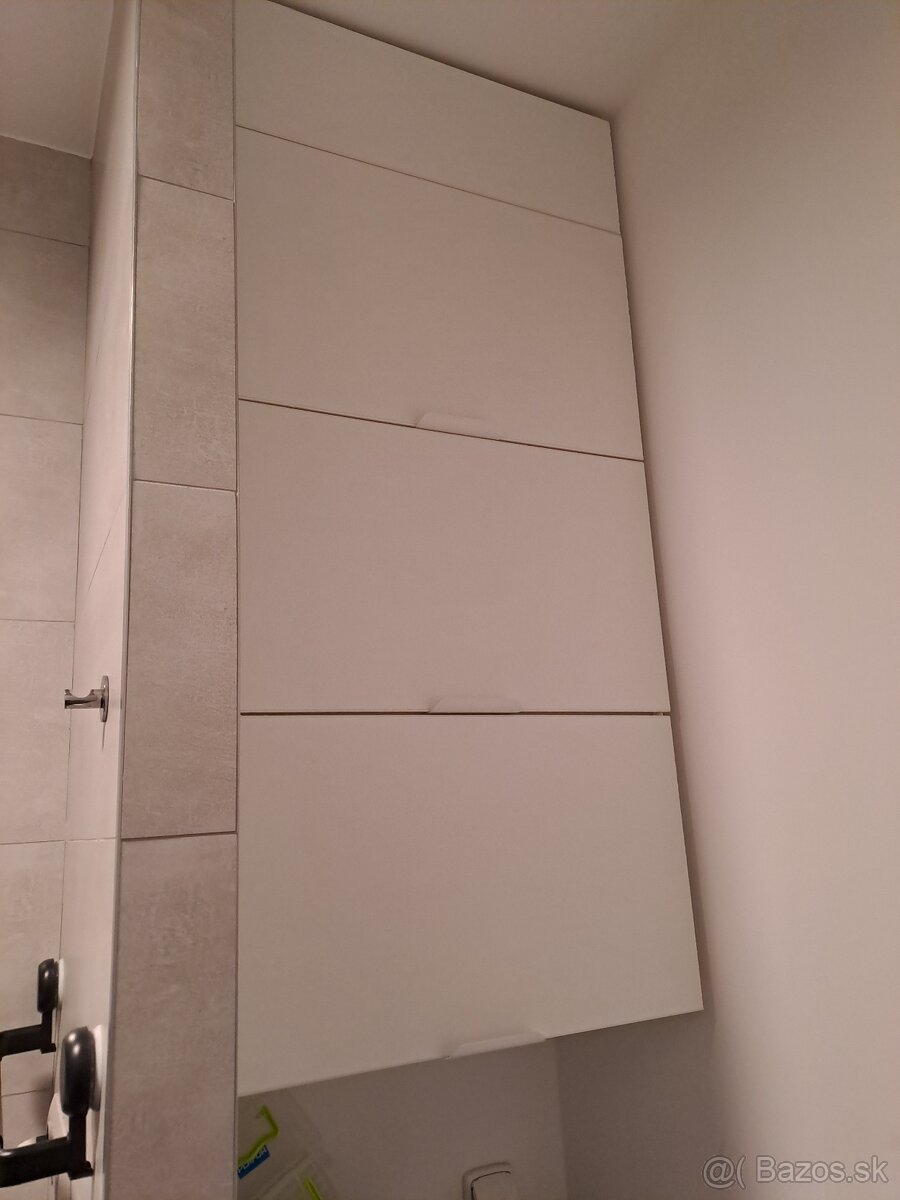 Predám na mieru od stolára robenú skriňu. Rozmery: výška 130cm, šírka 60cm, hĺbka 40cm. Biela matná farba, 3x výklopné dvierka (otváranie smerom do hora). Horný pás je pevný,neotváravý. Skriňa bola robená nad práčku, aktuálne je v celom kuse, zvesená a položená na inom mieste. Osobný odber v Petržalke.