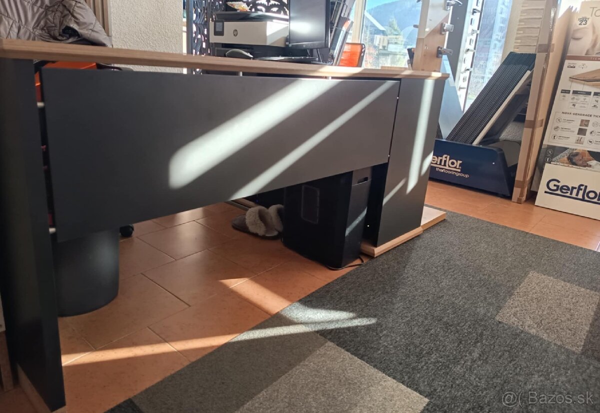 * Pracovný kancelárisky stôl zo skríňou z masívu značky Vivienne dub+antracit rozmery