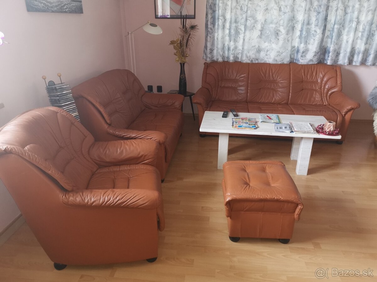 Predám koženú sedaciu súpravu vo výbornom stave. Zostava trojkreslo (gauč), dvojkreslo, kreslo, taburetka. Dá sa urobiť pravý alebo ľavý roh.
