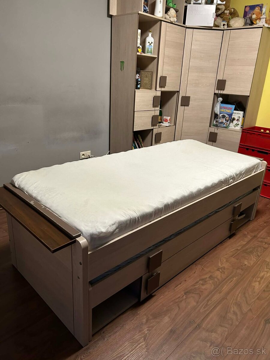 Detská rozkladacia posteľ - [6.3. 2026]Mám na predaj málo používanú detskú rozkladaciu posteľ 90x 200, po rozložení 180x200 s dvojitým úložným priestorom vo farbe dub lancelot. Posteľ sa predáva bez matracov.