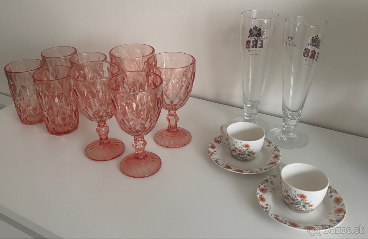 Ponúkam na predaj sadu ružových brúsených pohárov a pivových pohárov značky ERB spolu s kávovým setom. Všetky kusy sú nepoškodené, vo výbornom stave a pripravené na okamžitý odber.