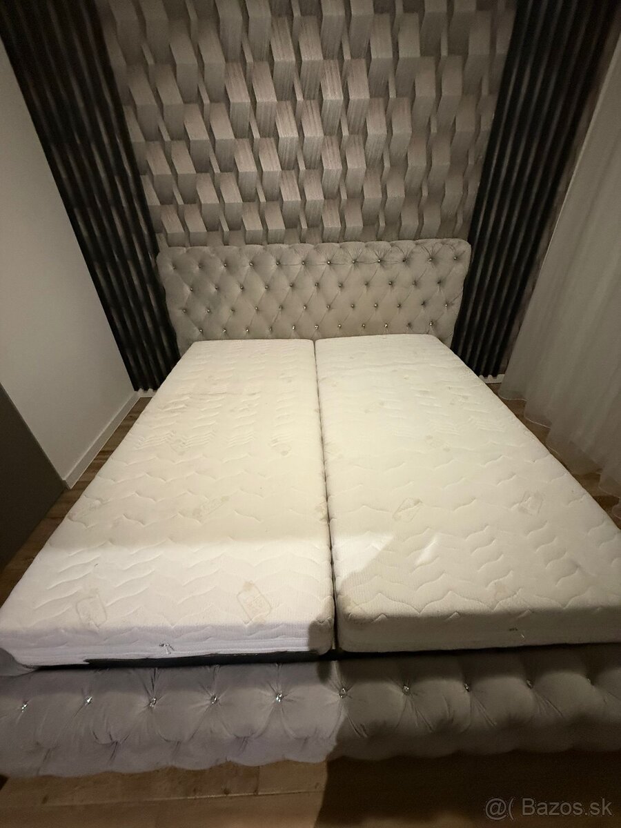 Predám manželskú posteľ v štýle CHESTERFIELD sivej farbe. 180x200