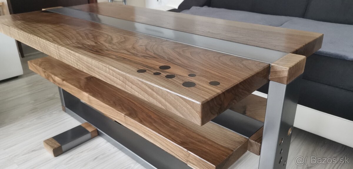 Predam ručne vyrobený konferenčný stôl z orechového dreva a zeleza časti zaliate živicou.