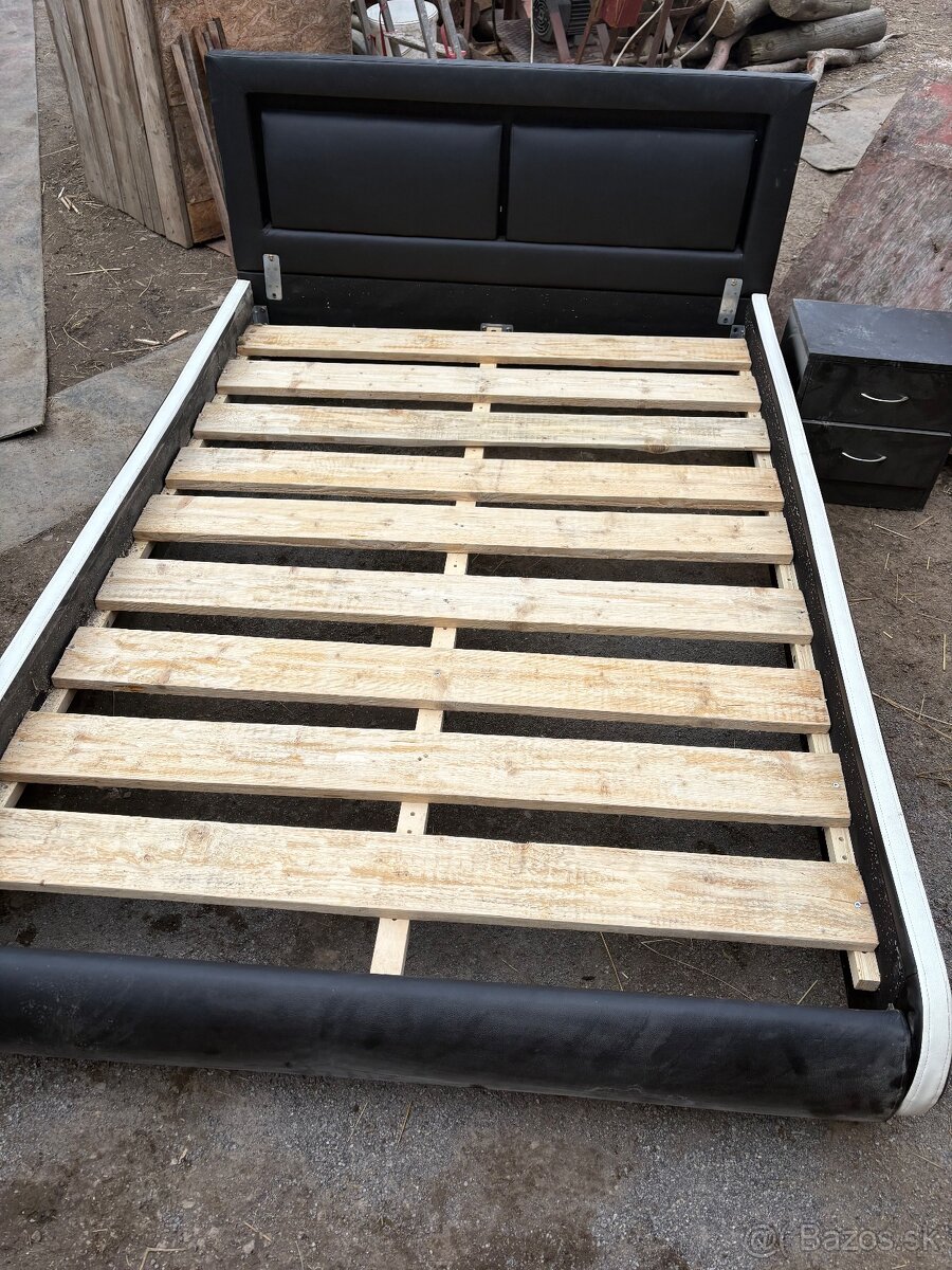 Predám manželskú posteľ + nocňé stolíky - [19.3. 2026]Predám manželskú posteľ aj s roštami, matracmi, 2x nočný stolík -58x38 hĺbka šuflíka 30 . Rozmer je 187x200. Posteľ má poškodenia na ráme, viďte foto. Šikovný majster sa vynájde. Cena 80€ za všetko. Osobný odber BA