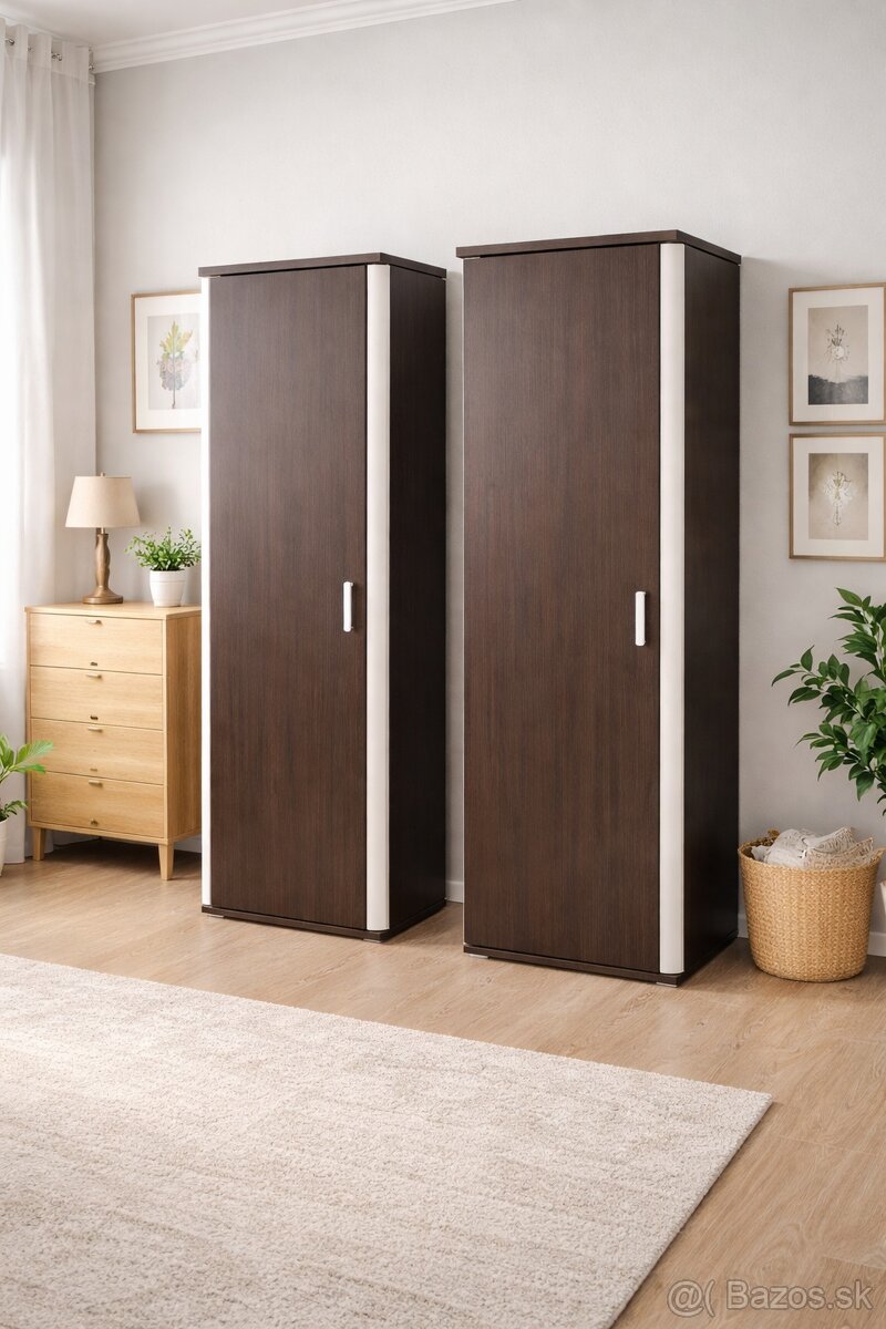 Ponúkam na predaj dve zachovalé šatníkové skrine v elegantnej kombinácii tmavého dreva a bielych detailov. Skrine sú funkčné, čisté a vhodné do spálne, chodby alebo študentskej izby.
