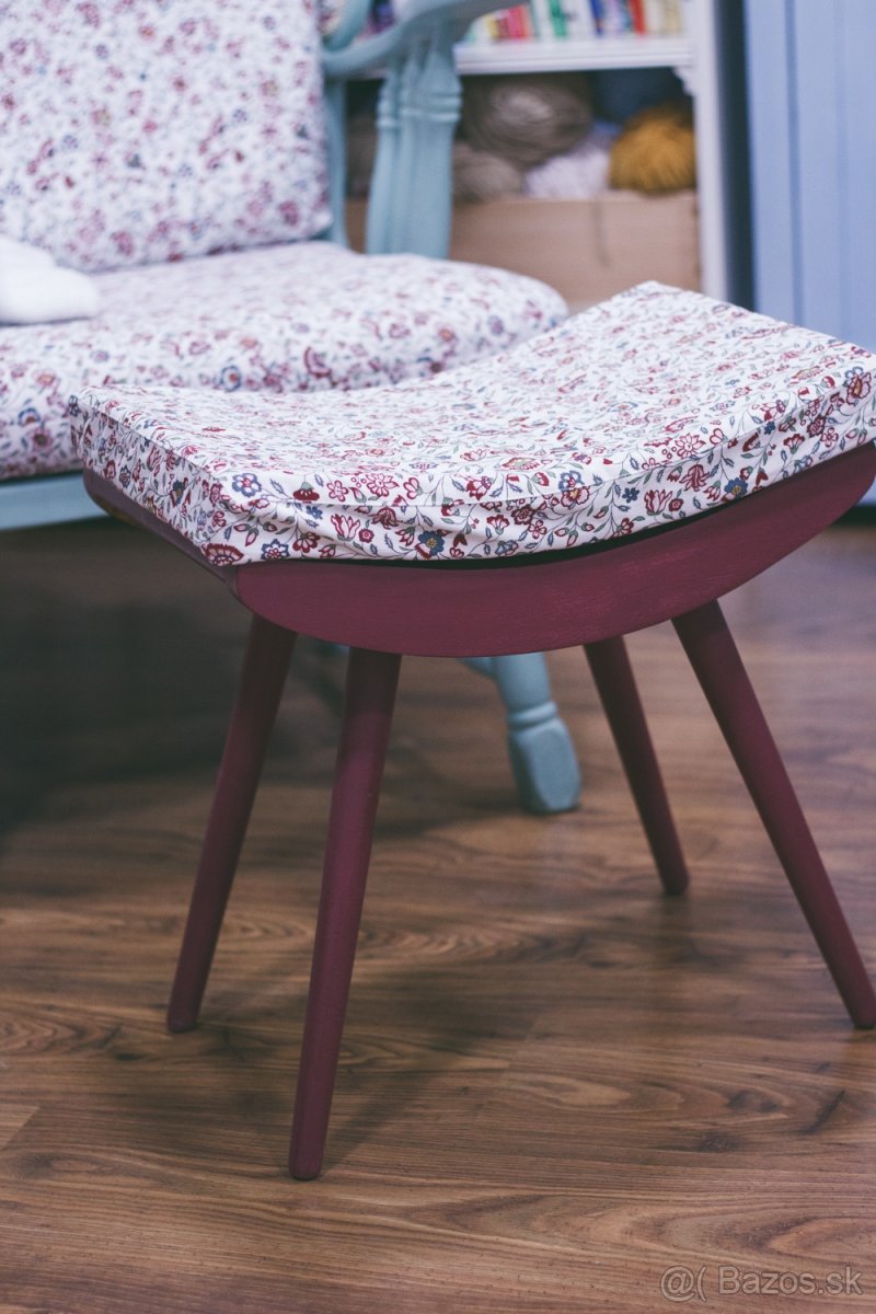 Stolička bez operadla - staršia, maľovaná s novým poťahom na sedák, ktorý sa dá dať dole a oprať, 44x30cm, výška 47cm, cena 45€, osobný odber BA Rača