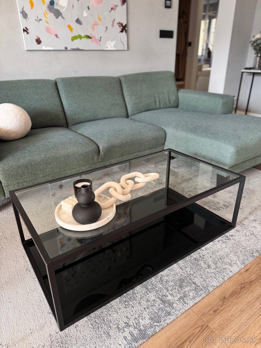 Konferencny stolik - [8.3. 2026]Predám tento krásny moderný sklenený konferenčný stolík - priehľadné sklo kombinované čiernym sklom a ladenými chrómovými prvkami.