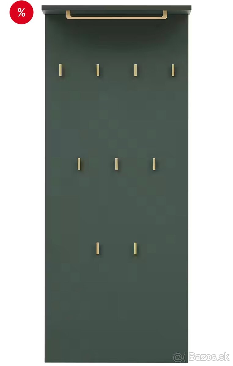 Predám vešiak na oblečenie zelené so zlatými doplnkami. Čisto nové, nerozbalené v krabici. Rozmery na foto. Kupované v Nemecku, pôvodná cena 100€.