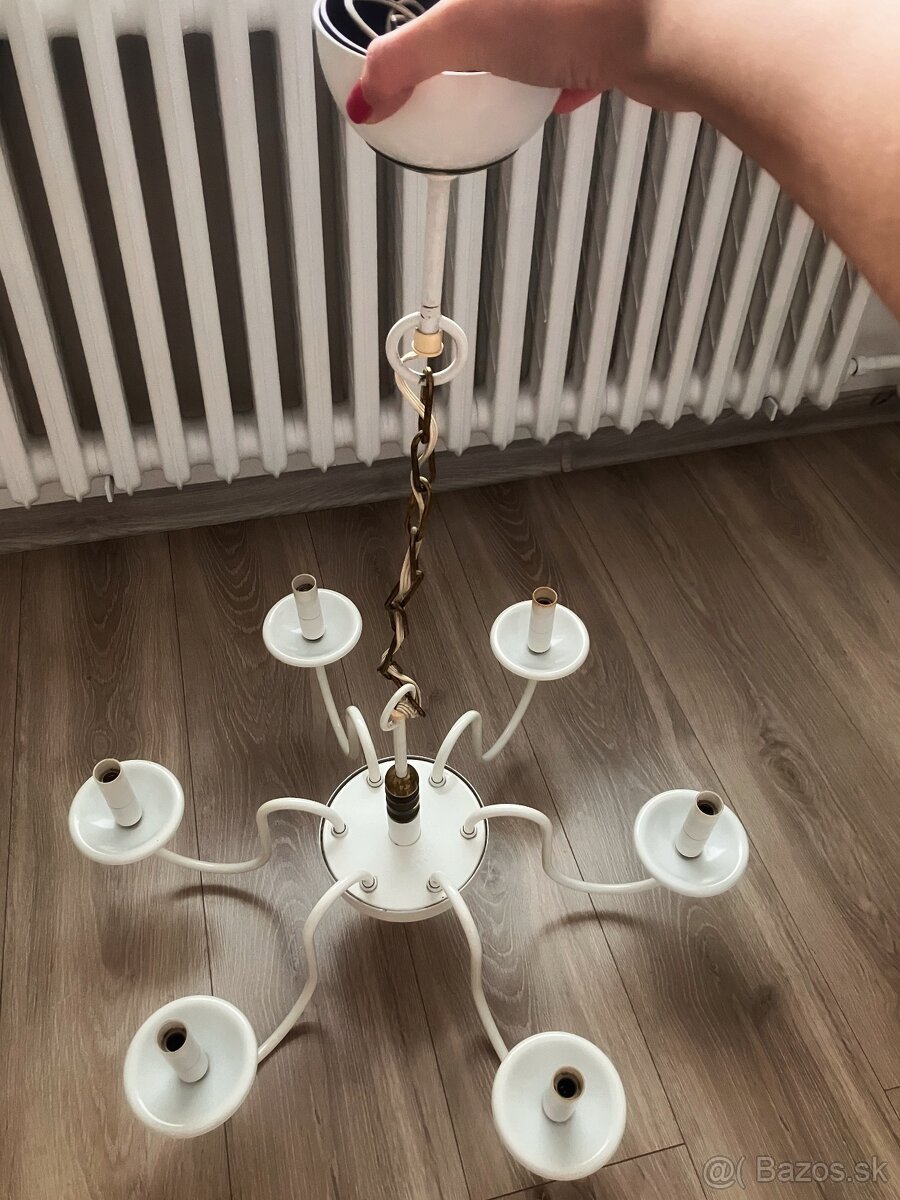 Predám krásny retro luster v bielej farbe. Na lustri som mala žiarovky v tvare sviec, miestnosť tak dostáva elegentný šmrnc.