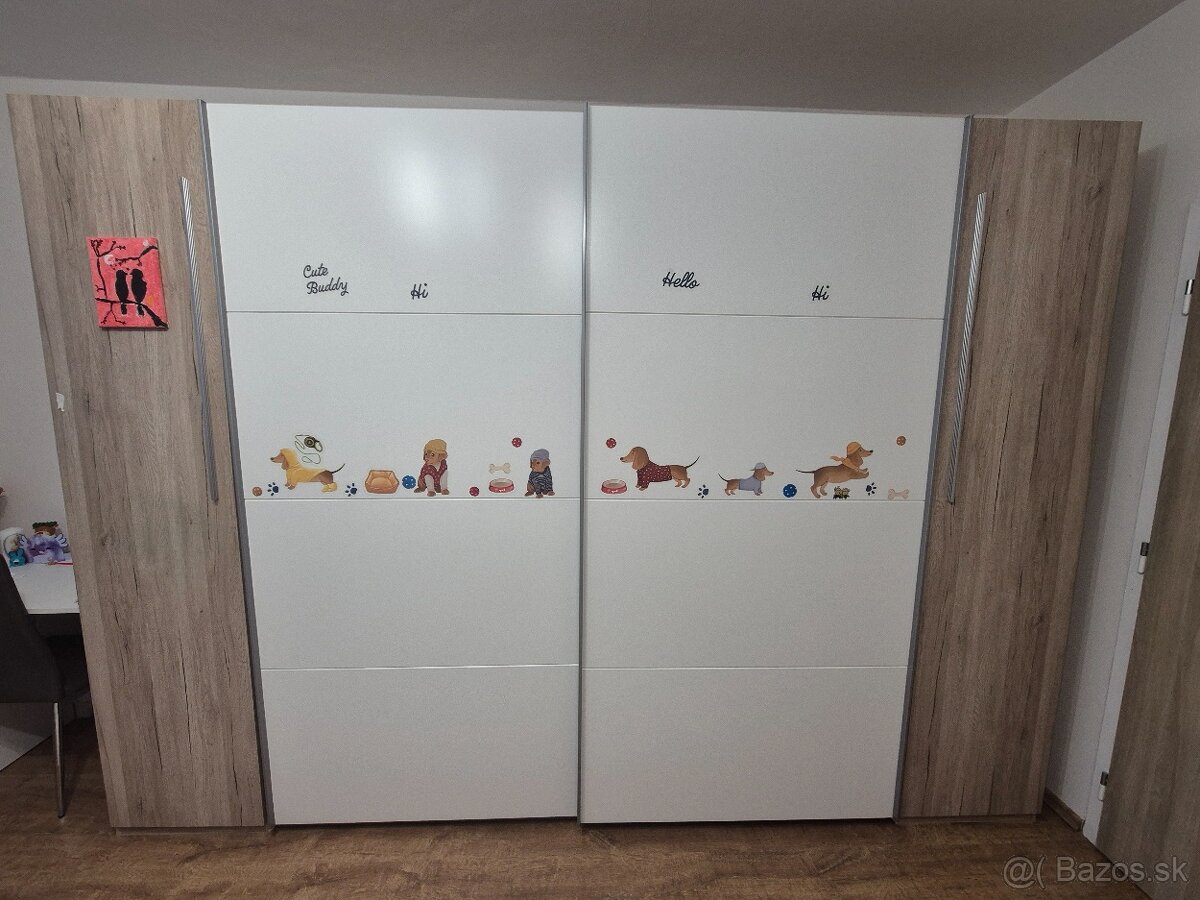 Predám veľkú skriňu ako nová 2x posuvné dvere 2x otváracie rozmery 315cm x 226cm skriňa je uz rozložená Košice cena novej 1099e