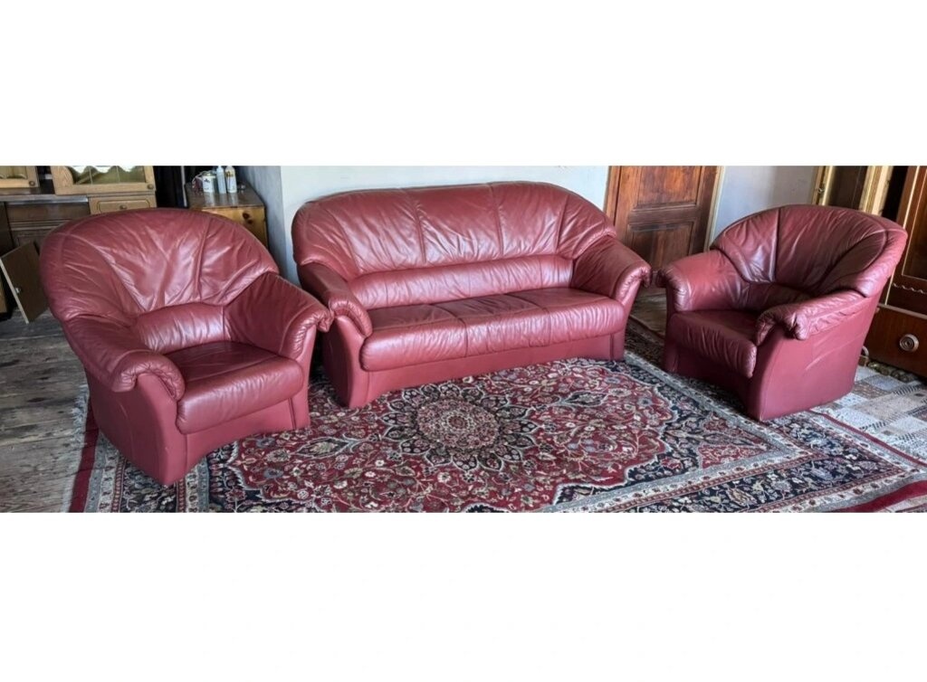 Kožená sedacia súprava 3+1+1 s masivnym drevom - [22.3. 2026]Ponúkam koženú sedaciu súpravu v zložení 3+1+1 (trojsedák + dve kreslá) v elegantnom klasickom prevedení.