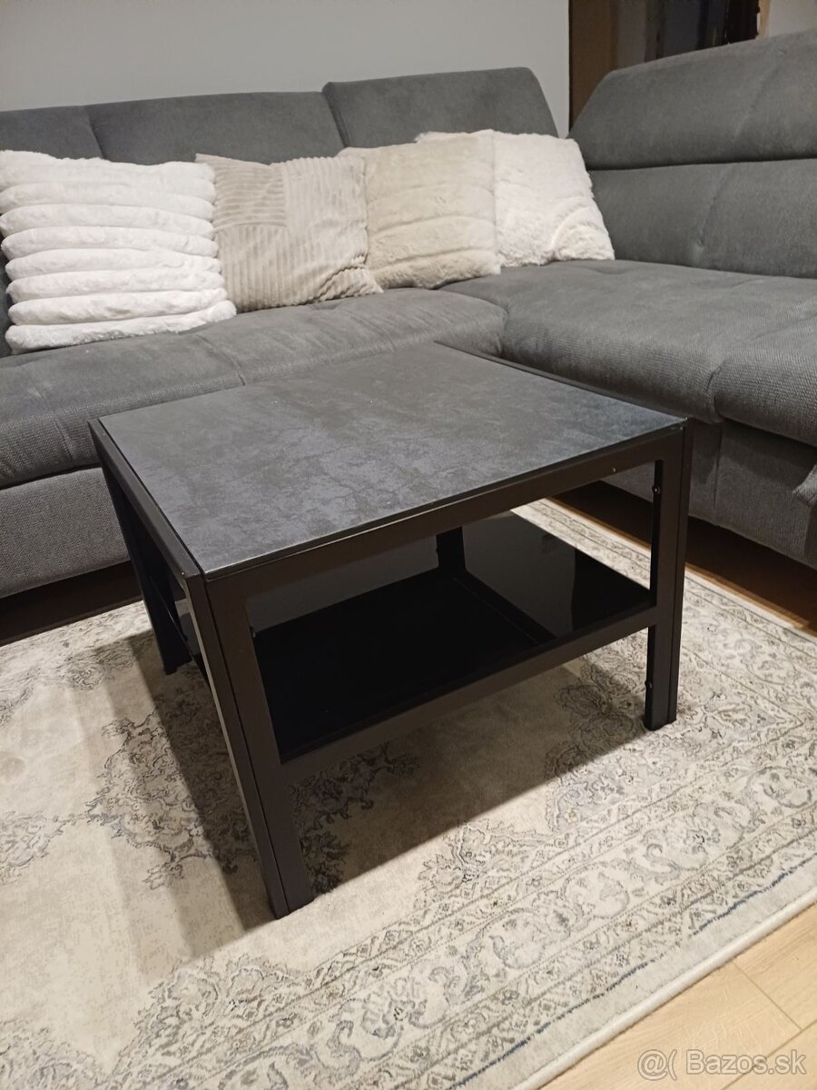 Predam stolik z Mobelixu. 60x60x45 - vyska. Kovova konstrukcia, vrchna cast sklo s mramom dekorom. Spodna vnutorna cas leske cierne sklo. Len osobny odber.