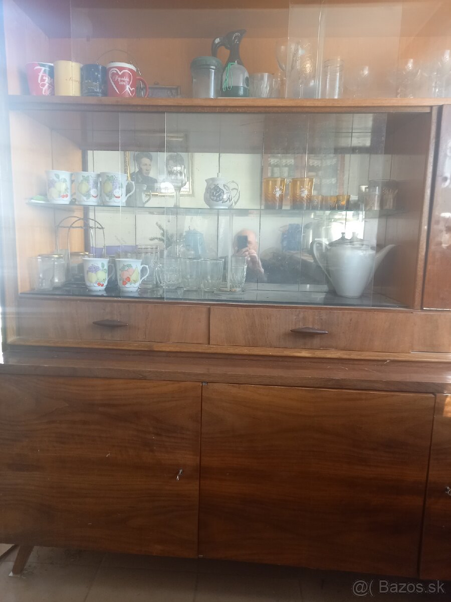 Retro obývačka - [22.3. 2026]Predám zachovalú celú zostavu, skriňa, 2x sekretár, konferenčný stolík(jeden roh odlupený), jedálenský rozkladací stôl +stoličky, rozkladací gauč +kreslá -treba vytepovať.