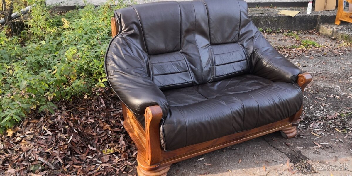 Predám koženú dvojsedačku s masívnym drevom.