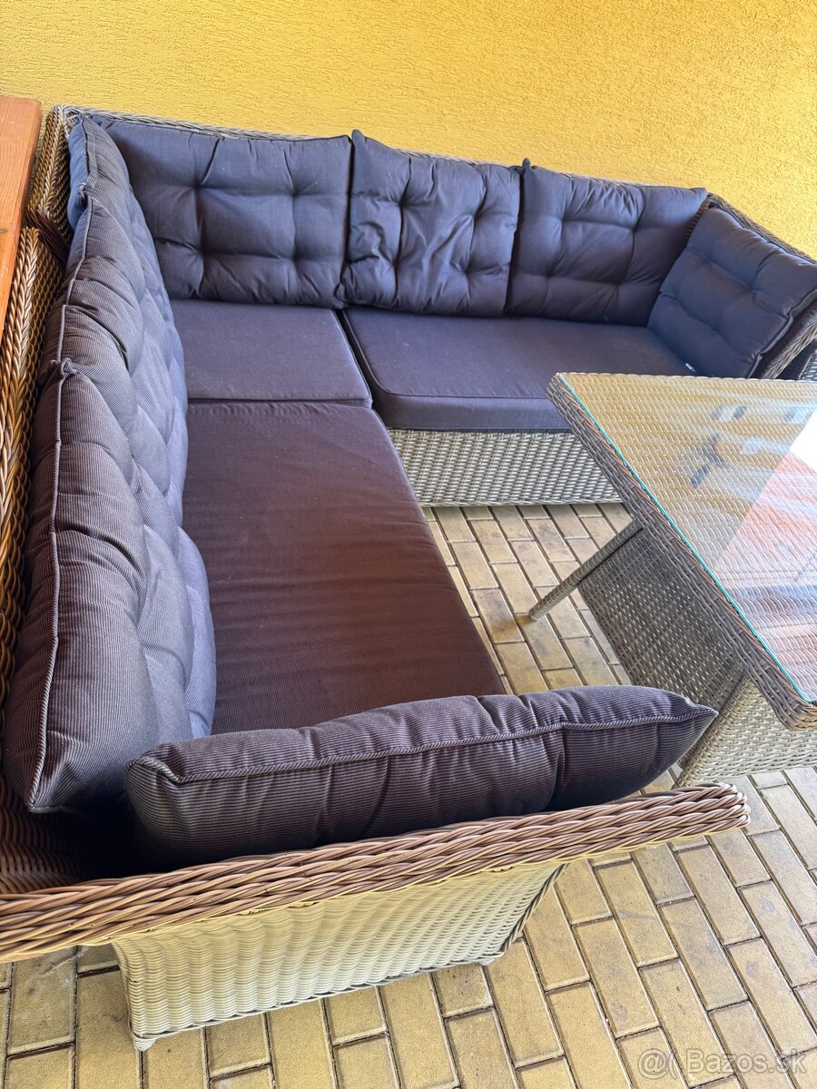 Predam kvalitnu sedacku z umeleho ratanu s kvalitnymi pratelnymi vankusmi, stolom, a truhlicou. Zahradny nabytok sedacka zahradne sedenie umely ratan