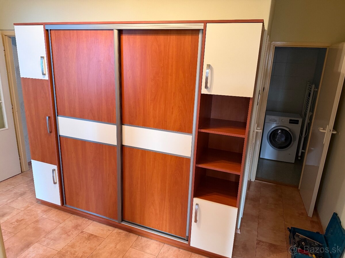 Skriňa s posuvnými dverami - [23.3. 2026]Predám túto maximalne zachovalu,môžem si dovoliť povedať skoro ako novu skrinu,foto prikladám zneru pretože už je rozložená nakoľko ju už nepotrebujeme.Problem je ten že asi bude treba dokúpiť šrubu na zmontovanie nakoľko neviem či ich nájdem.Inak je všetko v top stave.