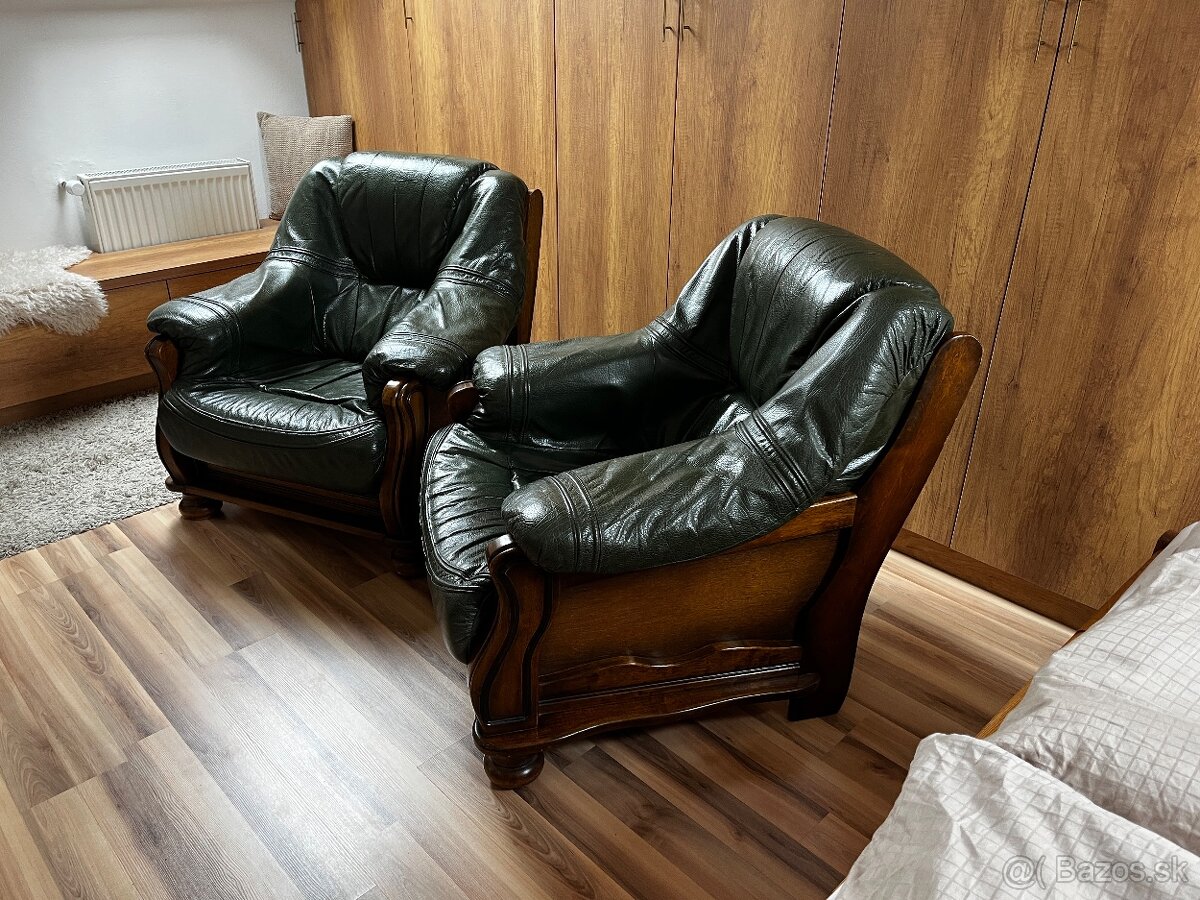 Predam dve kožené kreslá s konferenčným stolíkom. Z masívneho dreva.