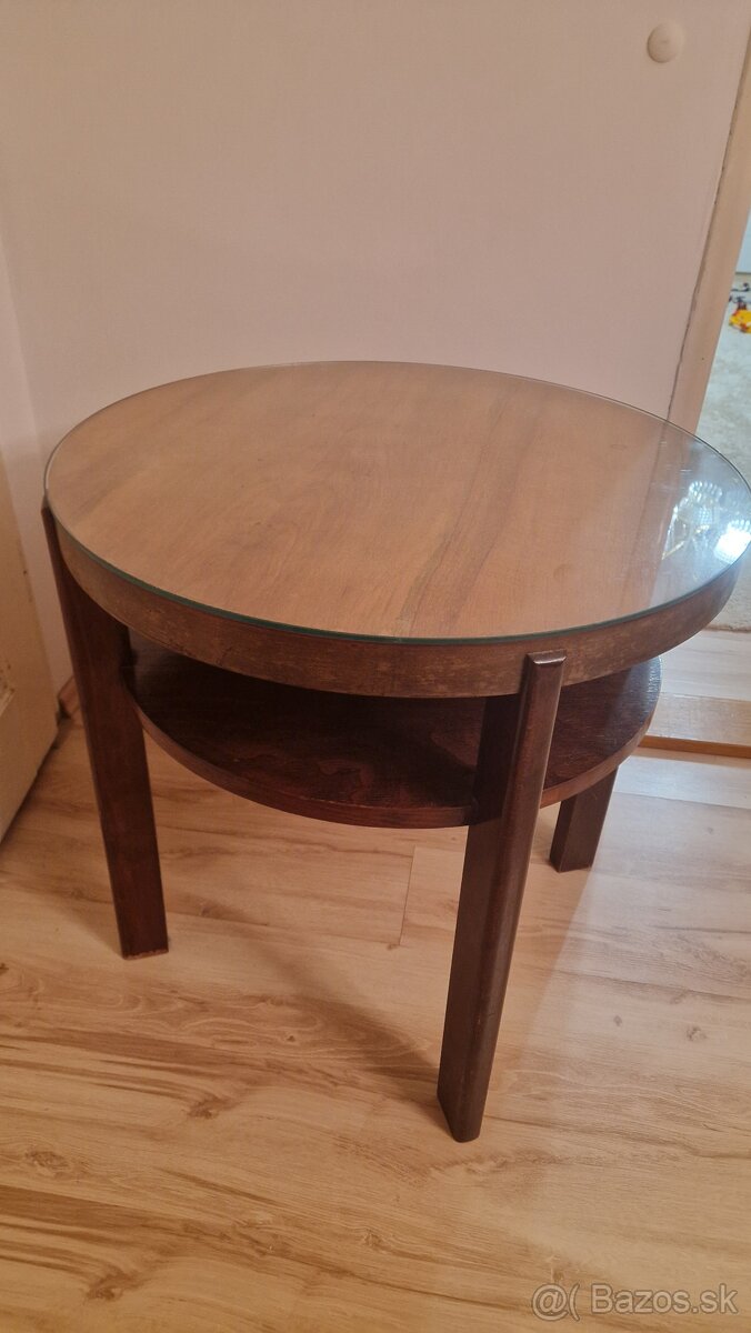 Predám drevený príručný stolík s rozmermi: výška 69 cm a priemer 70 cm. K stolíku predávam aj hrubé ochranné sklo.