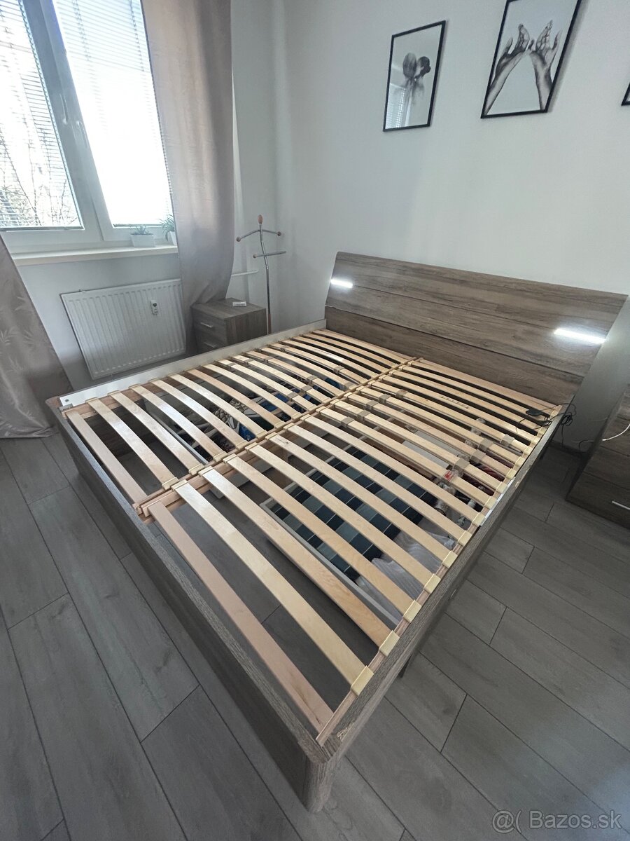 Posteľ s roštom a s úložným priestorom bez matracov. So zabudovaným svetlom. Ako na foto.
