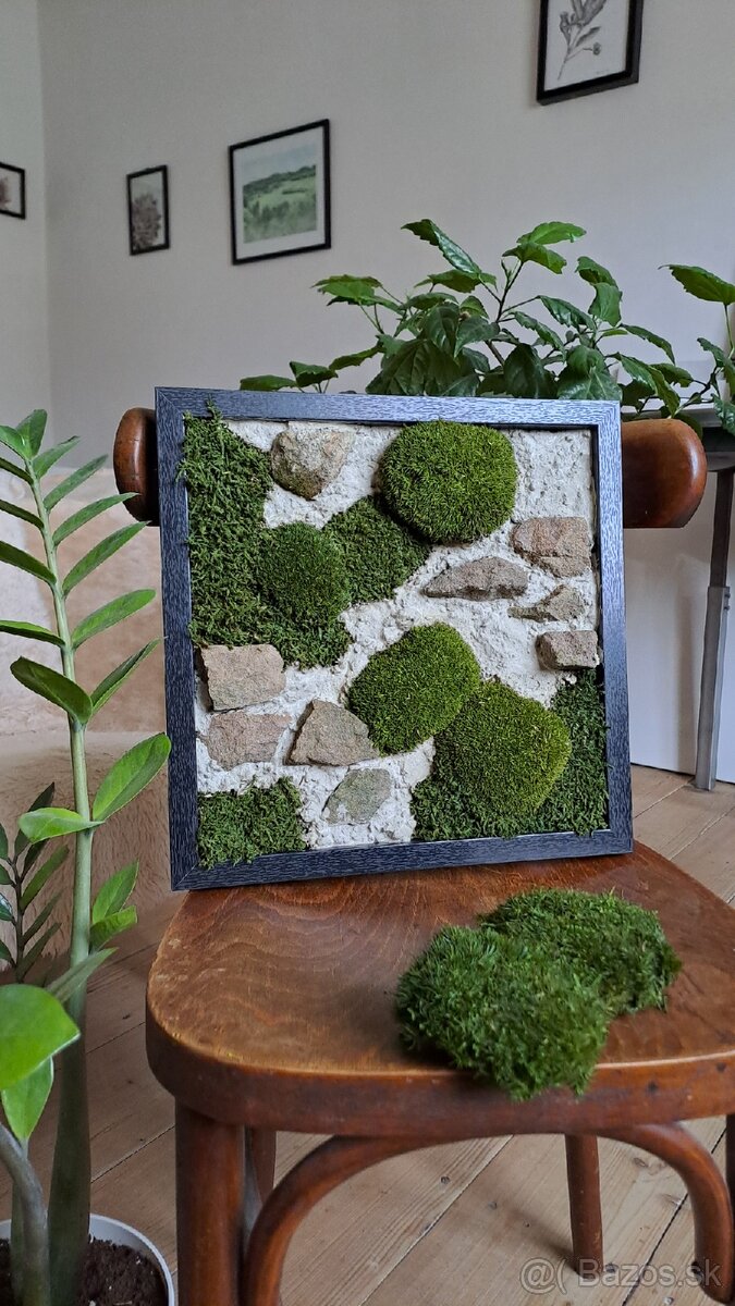 Machový obraz v drevenom ráme - [22.3. 2026]Ponúkam na predaj ručne zhotovený machový obraz s rozmermi 80 cm (šírka) a 40 cm (výška).