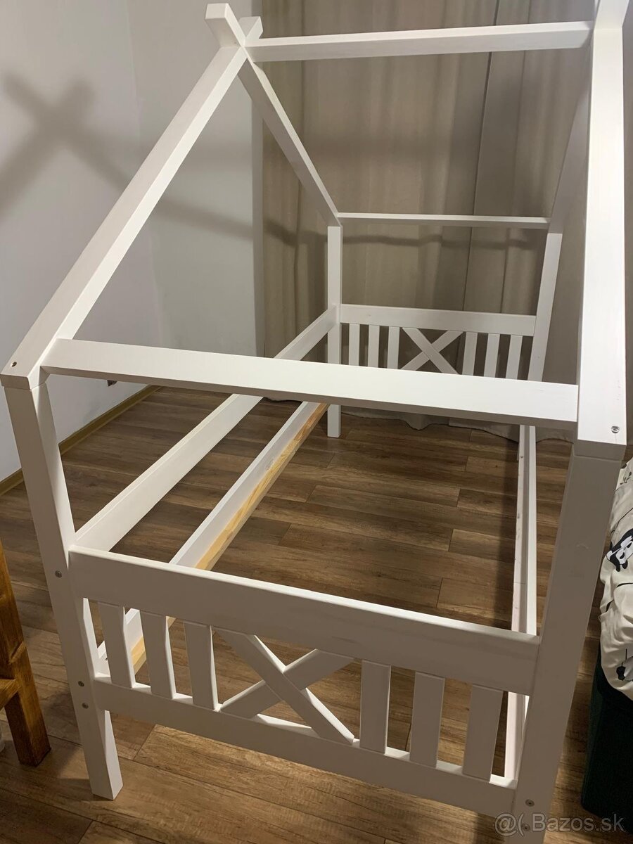 Domčeková posteľ 80x160 - [18.3. 2026]Predám detskú domčekovú posteľ s rozmermi 80x160x148,5 (š,d,v) vrátane matraca 80x160. K posteli je aj zábrana, nožičky sú vo výške 20cm. Domčeková posteľ je z borovicového masívu bez chemickej úpravy s hladným opracovaním. Posteľ aj matrac sú vo veľmi dobrom stave. Posteľ je v rozloženom stave a sp ...