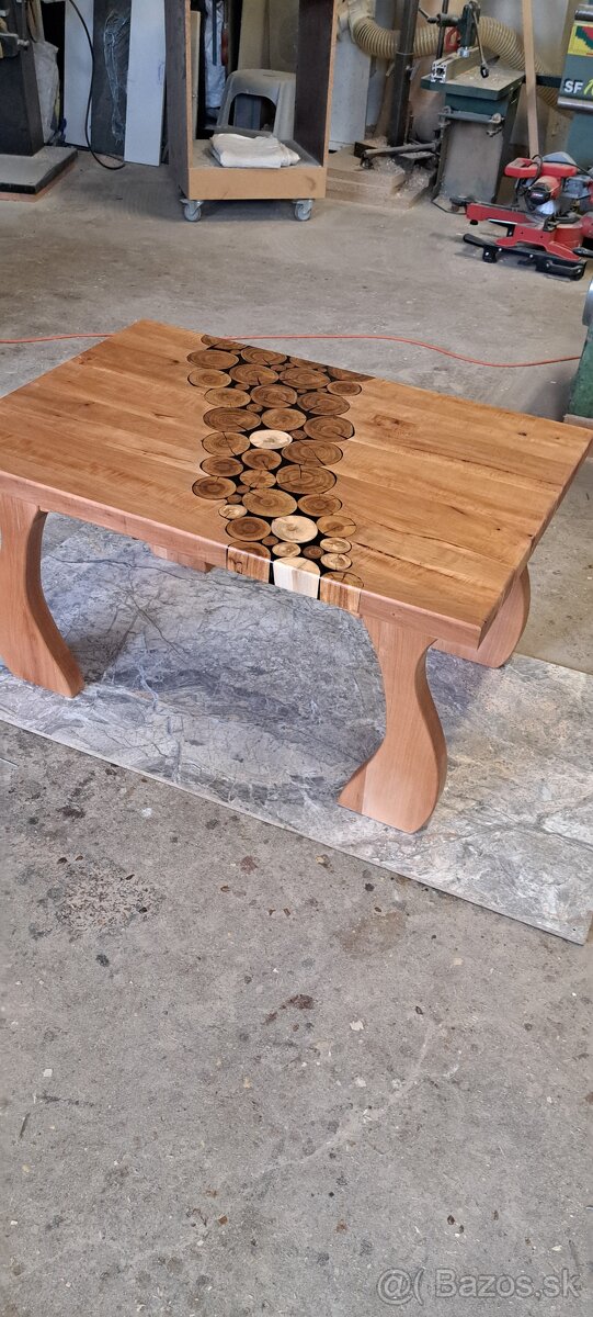 Predám tento konferenčný stolík rozmer d.š.v. 930×630×500 mm použitý material slivka+epoxidova živica