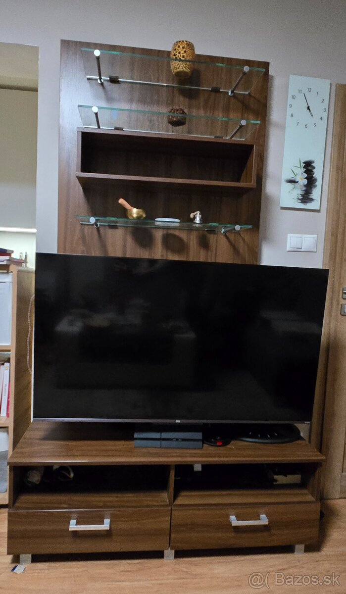 TV zostava: TV skrinka so suplikmi, šírka 120 cm, výška 36 cm, hĺbka 40 cm.
