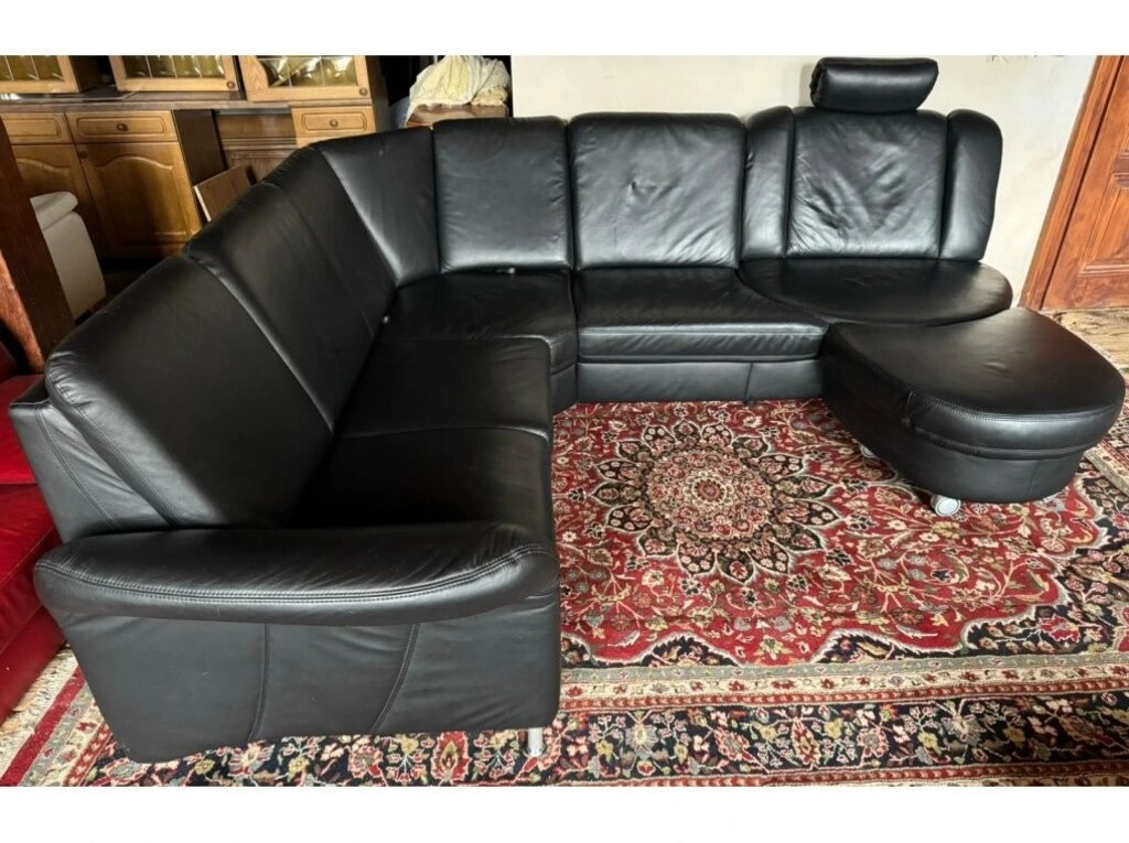Luxusní rohová kožená sedací souprava, 2971 - [23.3. 2026]Luxusní rohová kožená sedací souprava s taburetem.