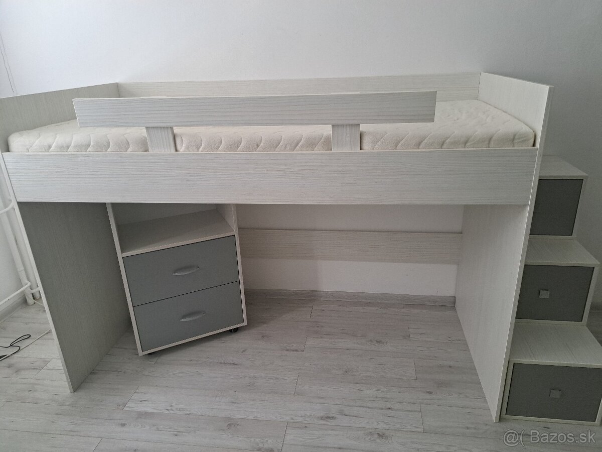 Predam postel bez poskodeni dl.200cm sirka 90cm vyska 140cm ma ulozny priestor v schodoch plus policku zo suflikmi ktora je na kolieckach cena 220eur IBA OSOBNY ODBER