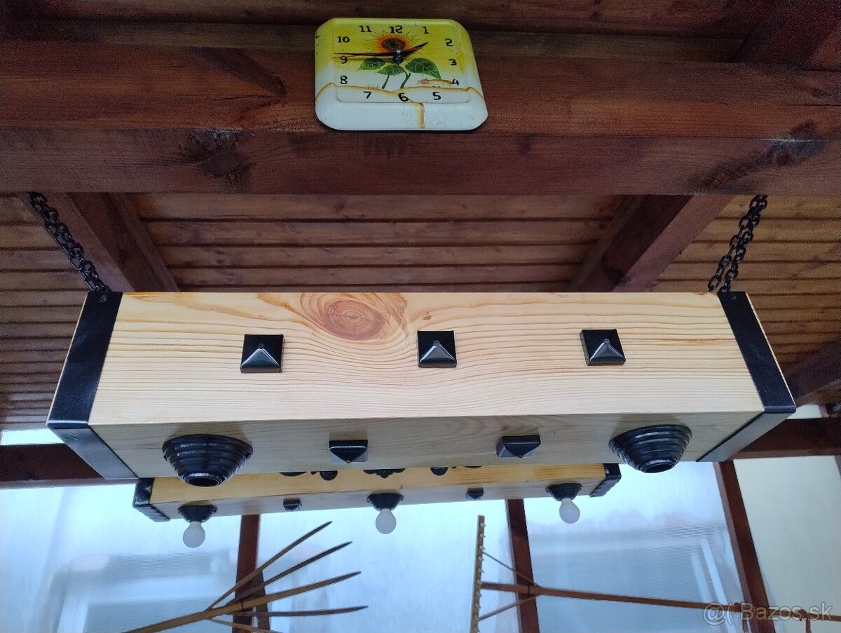 Predám luster drevený hranol objímky ná žiarovky 2xe27/220v rozmery 13x13x63cm+bočné svetlá 30€ posielam aj na dobierku