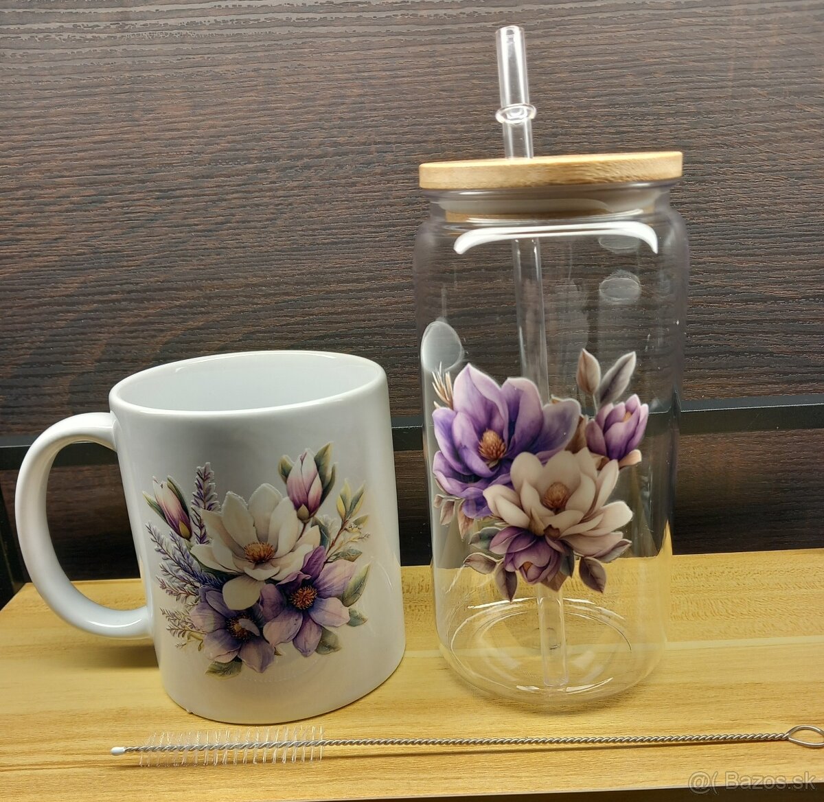 Hrncek,pohár,slamka a kefka na čistenie.