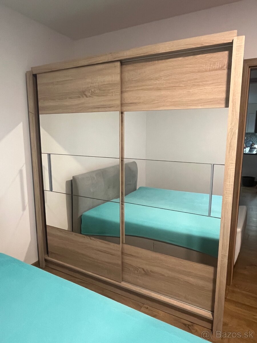 Dobry den, predavam tuto skrinu,pretože sa stahujem, a nemam ju kam dat. Skrina ma rozmery 205x80. Skrina ma aj velke zrkladklo, ktoré je bez škrabancov. V jednej strane skrine sú 4 poličky a v druhej je miesto na zavesenie. V pripade zaujmu píšte sms.
