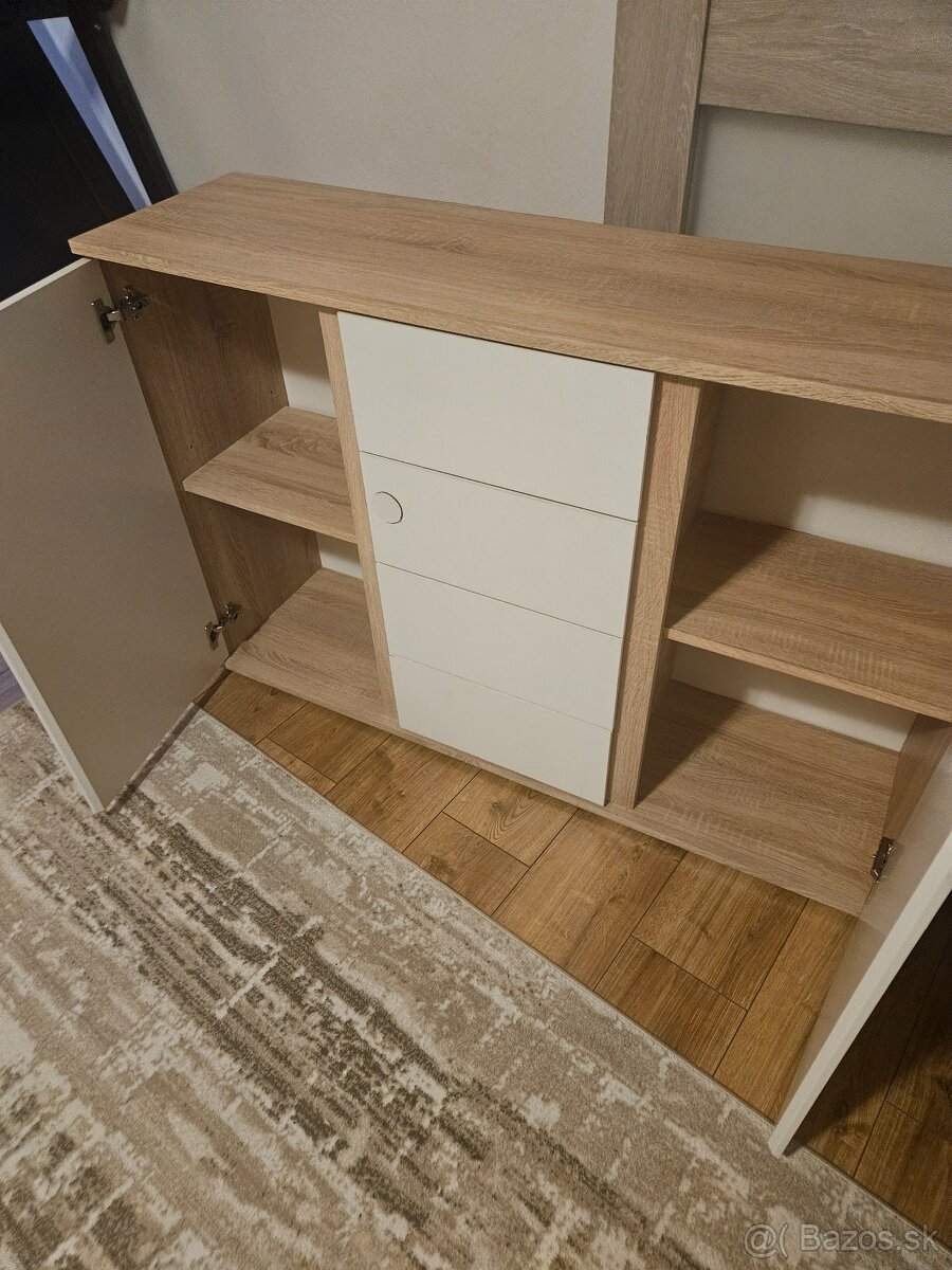 Komoda je zachovala len na jednom šuplíku ma nalepení krúžok