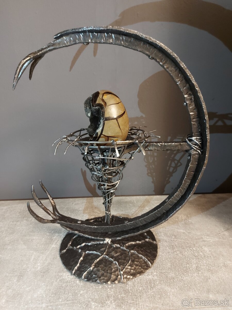 Predám ručne kovaný stojan s mineralom Septaria ( Dračie vajce).