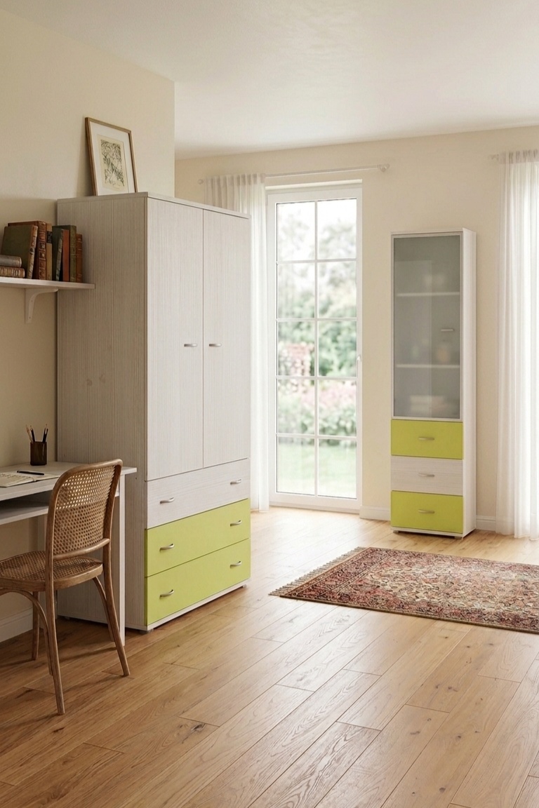 Priestor skriňe je na vešanie, možnosť prikúpiť v Ikei a policový systém.