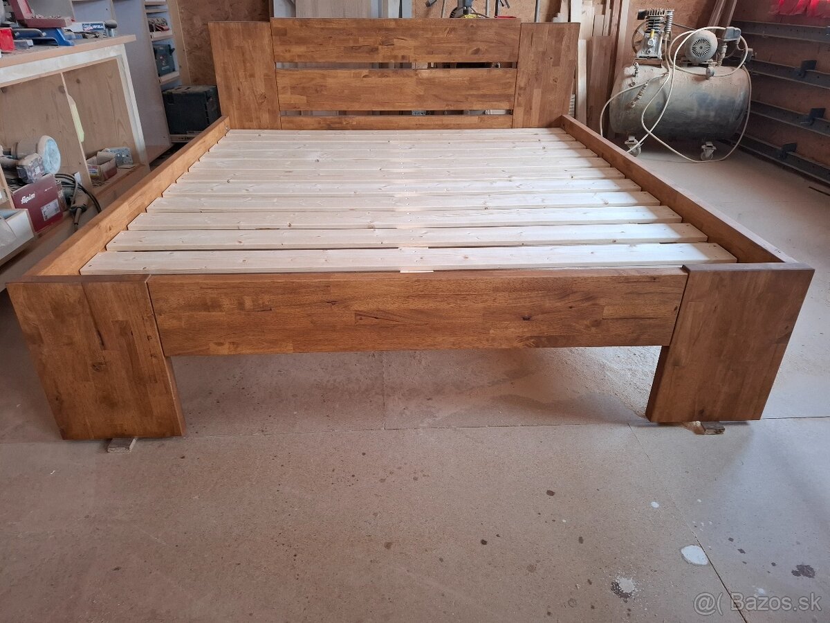Masívna dubová posteľ Lucia + 2 stolíky zdarma - [24.3. 2026]Manželská masívna posteľ Lucia, masív dub, v hranatom aj oblom prevedení, vysoká nosnosť postele, povrchová úprava olej, 5. a 6. stredová noha, pripevnené stolíky zdarma.