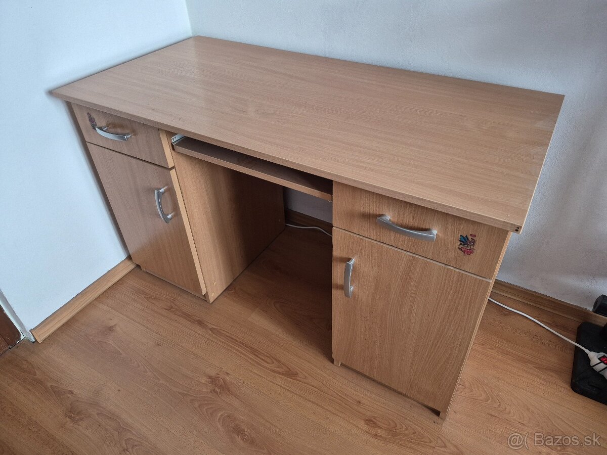 PC stolík do detskej, do kancelárie... - [23.3. 2026]Predám kancelársky písací stôl. Rozmery sú cca. viď posledná foto. Ten malý nádstavec na nožičkách na monitor napr. je úplne odnímateľný alebo aj posúvateľný doprava aj doľava.