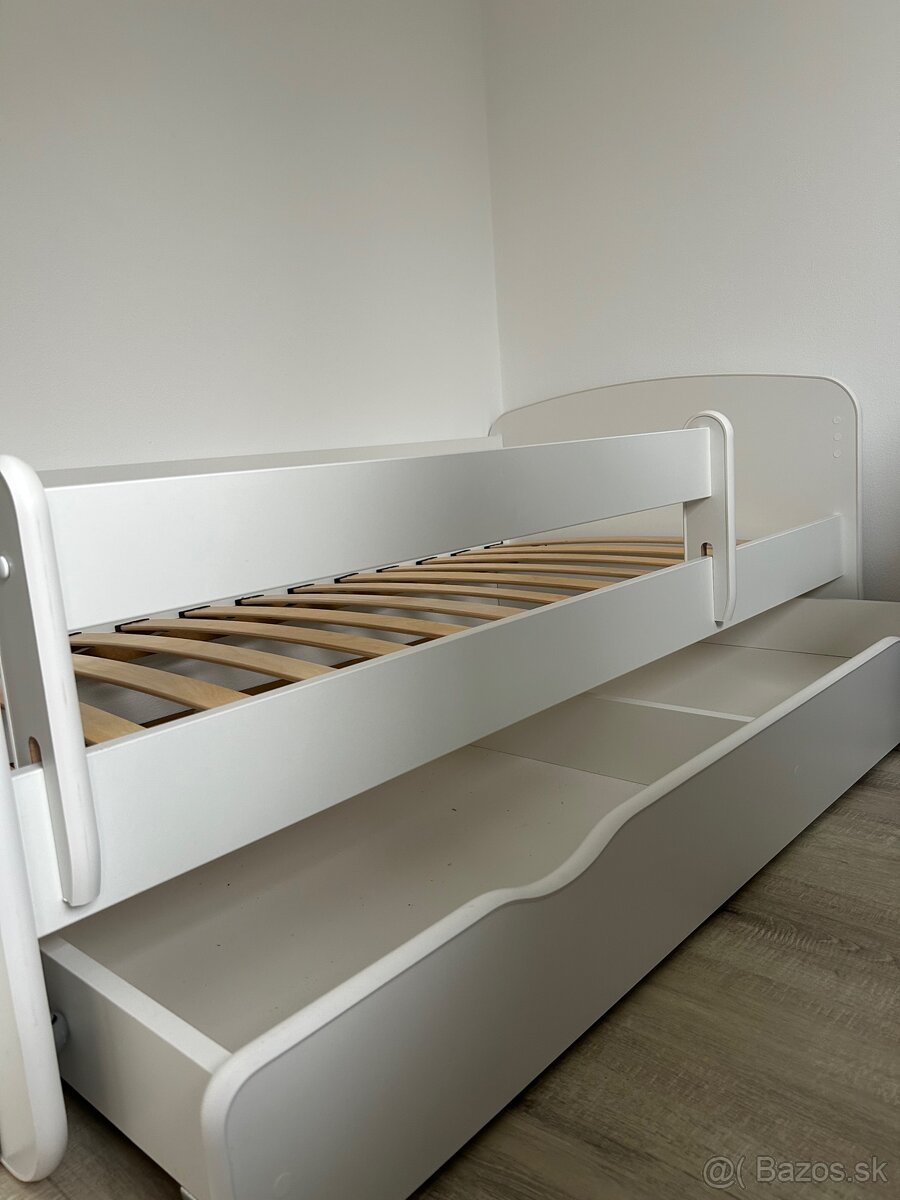 Detská posteľ, 80x160 cm, so úložným priestorom a zábranou (odnímateľna), veľmi málo používaná, ako nová. Píšte prosim iba na WhatsApp