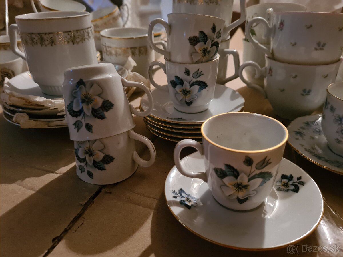 Ponukam na predaj porcelanove supravy a pohare, taniere, porcelanovy podnos na ovocie a sklenenu tacku