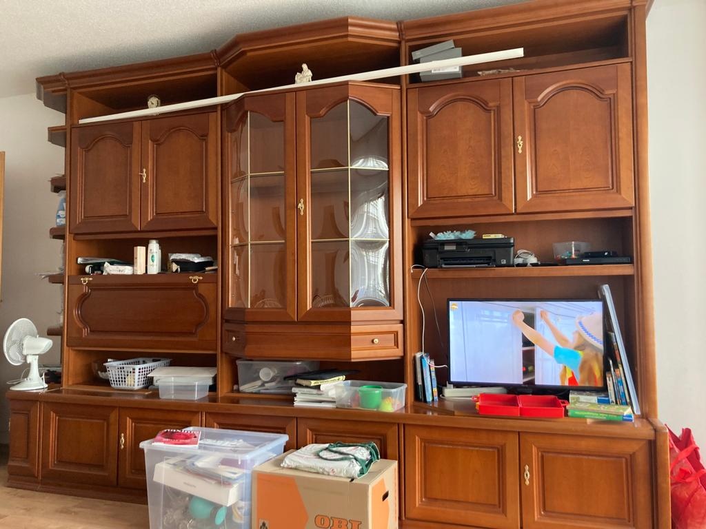 Predám veľmi kvalitnú pevnú obývaciu stenu, drevo čerešňa, mnoho odkladacieho priestoru, sklenená vytrínka pre odkladanie tanierov a pohárov, bar na alkonapoje, rozmery: v:š:h 240cm, 346cm, 54cm, cena 500€