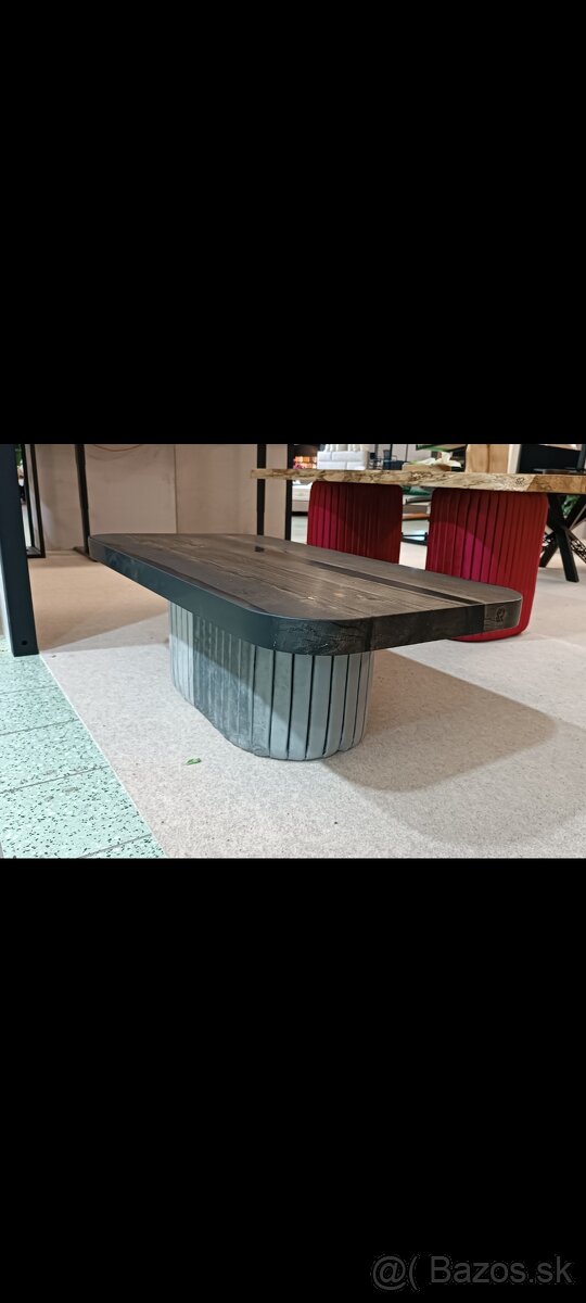 Predám tento jedinečný konferenčný stolík z masívu a epoxidu s čalúneným podnožím.