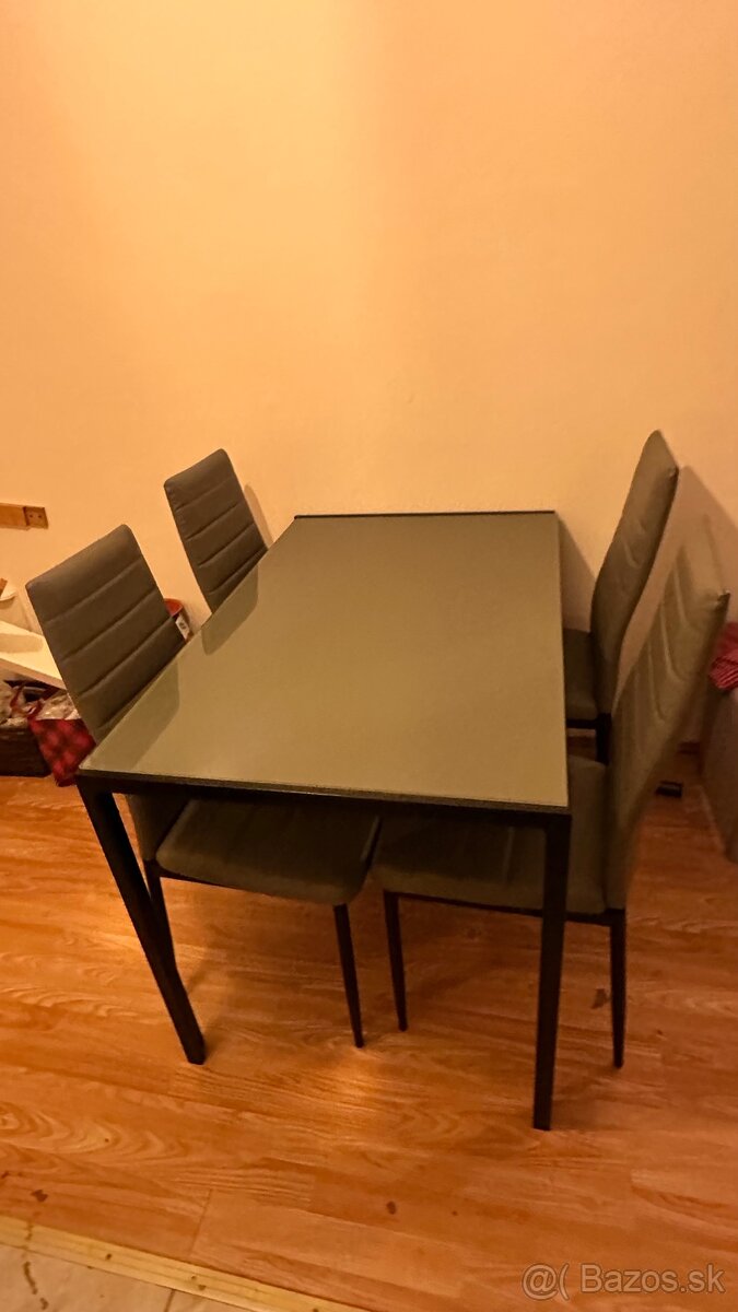 Jedálenský stôl so stoličkami - [10.3. 2026]Predáme tento stôl so stoličkami ako set . Stoličky sú z jysku a stôl Mobelix.